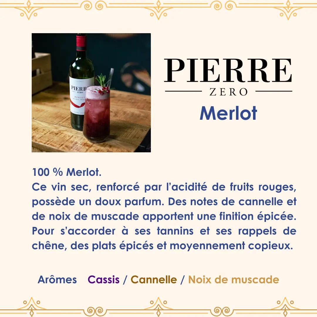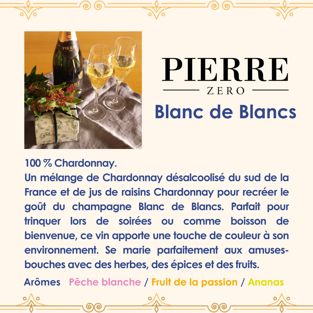 La marque Pierre Zéro est spécialisée dans les vins sans alcool, offrant au consommateur le goût et les bienfaits d’un vin de qualité sans consommation d’alcool. Elle a réussi à supprimer l’alcool des grands vins tout en conservant leur goût et leur caractère, et propose un nouveau type de vin auquel tout le monde peut trinquer, qu’il s’agisse de buveurs réguliers ou de non-buveurs, quelle que soit l’occasion.