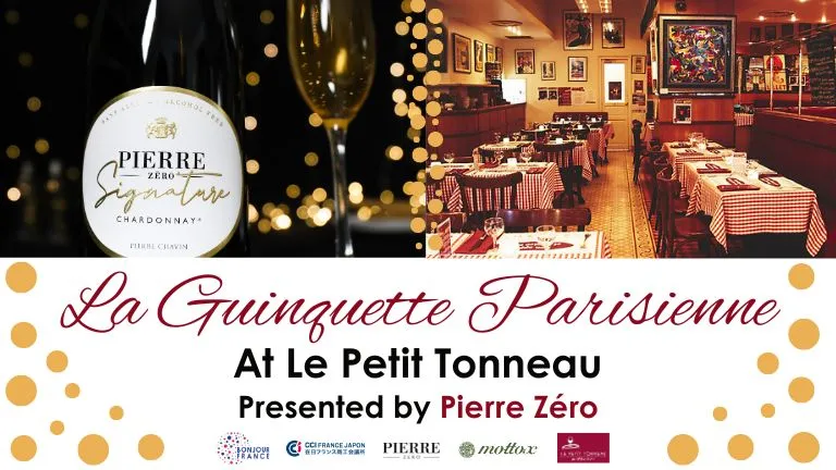 7月10日(木)、「ラ・ギャンゲット・パリジェンヌ」を開催するのは、東京・虎ノ門のレストラン「ル・プティ・トノー」です。フィリップ・バットンシェフが「ピエール・ゼロ」のノンアルコールワインに合う限定メニューを、このイベントのために考案してくださいました。さまざまな料理とノンアルコールワイン「ピエール・ゼロ」の新たなマリアージュは、今までにないユニークな発見になることでしょう。ギャンゲットに欠かせない音楽もどうぞお楽しみに!90名限定!フランスのアール・ド・ヴィーヴルと美食を満喫